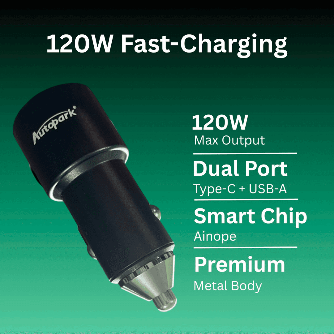 Stay powered wherever life takes you—with the Autopark 120W Charger, efficiency meets convenience.
